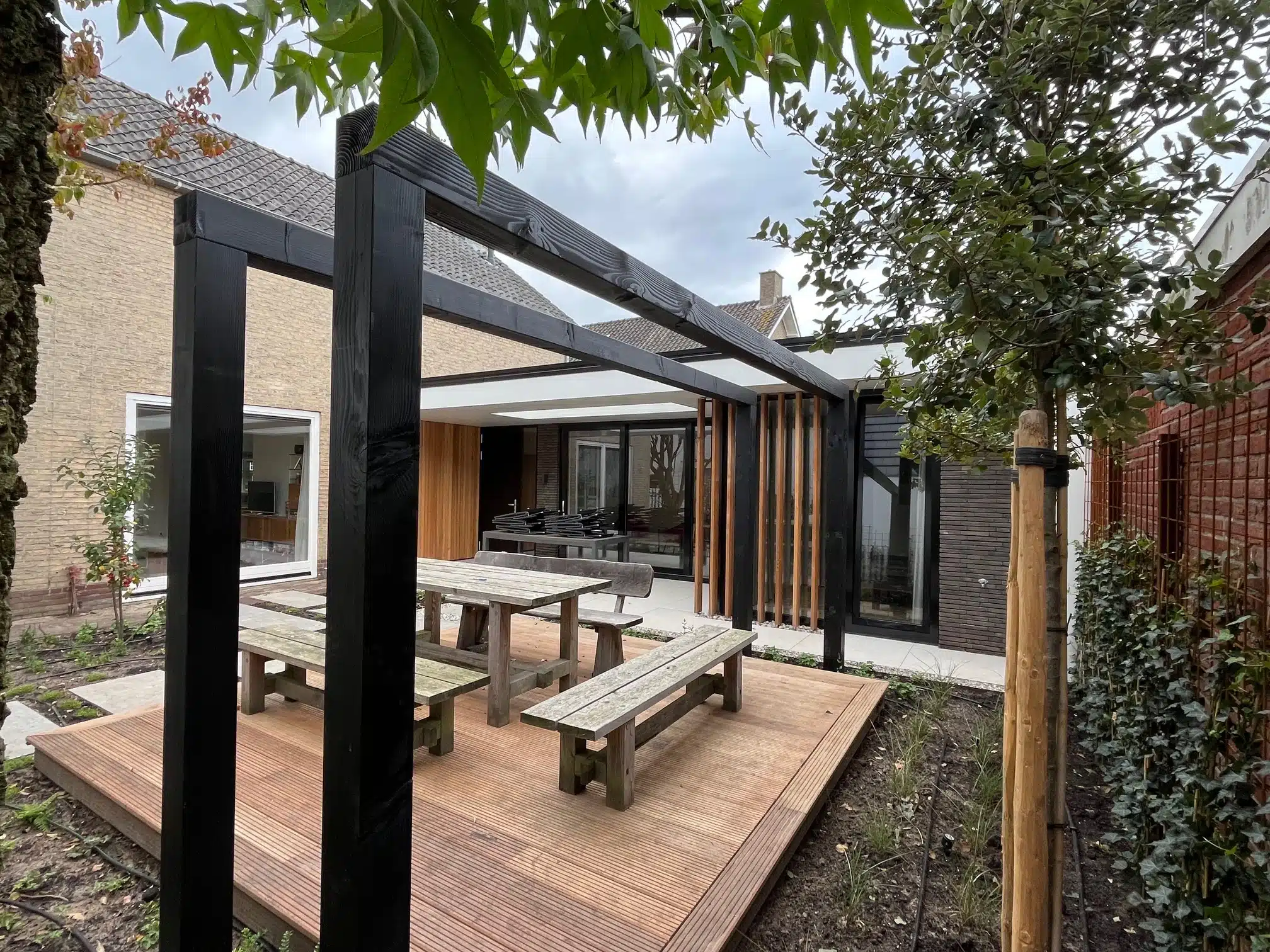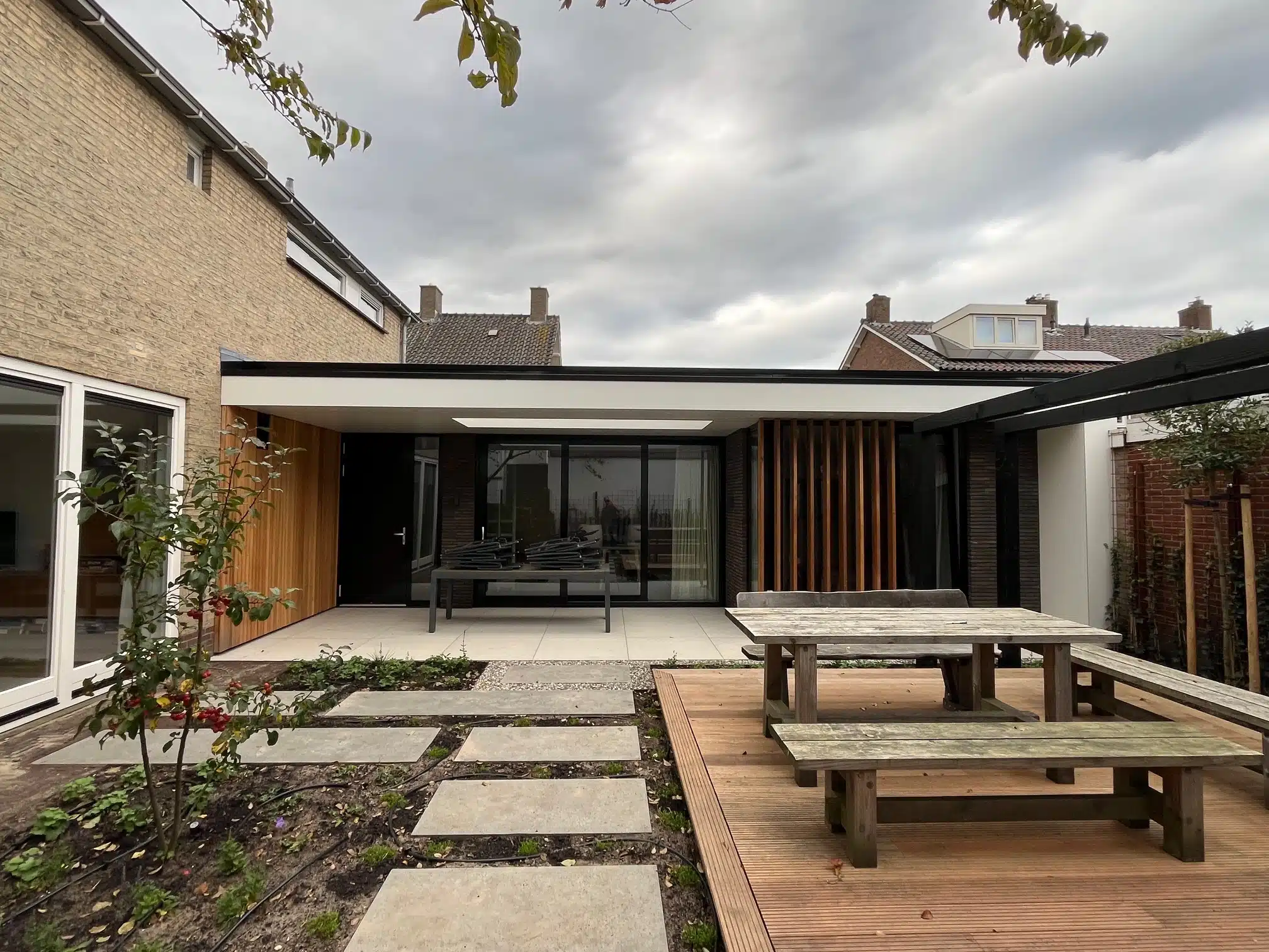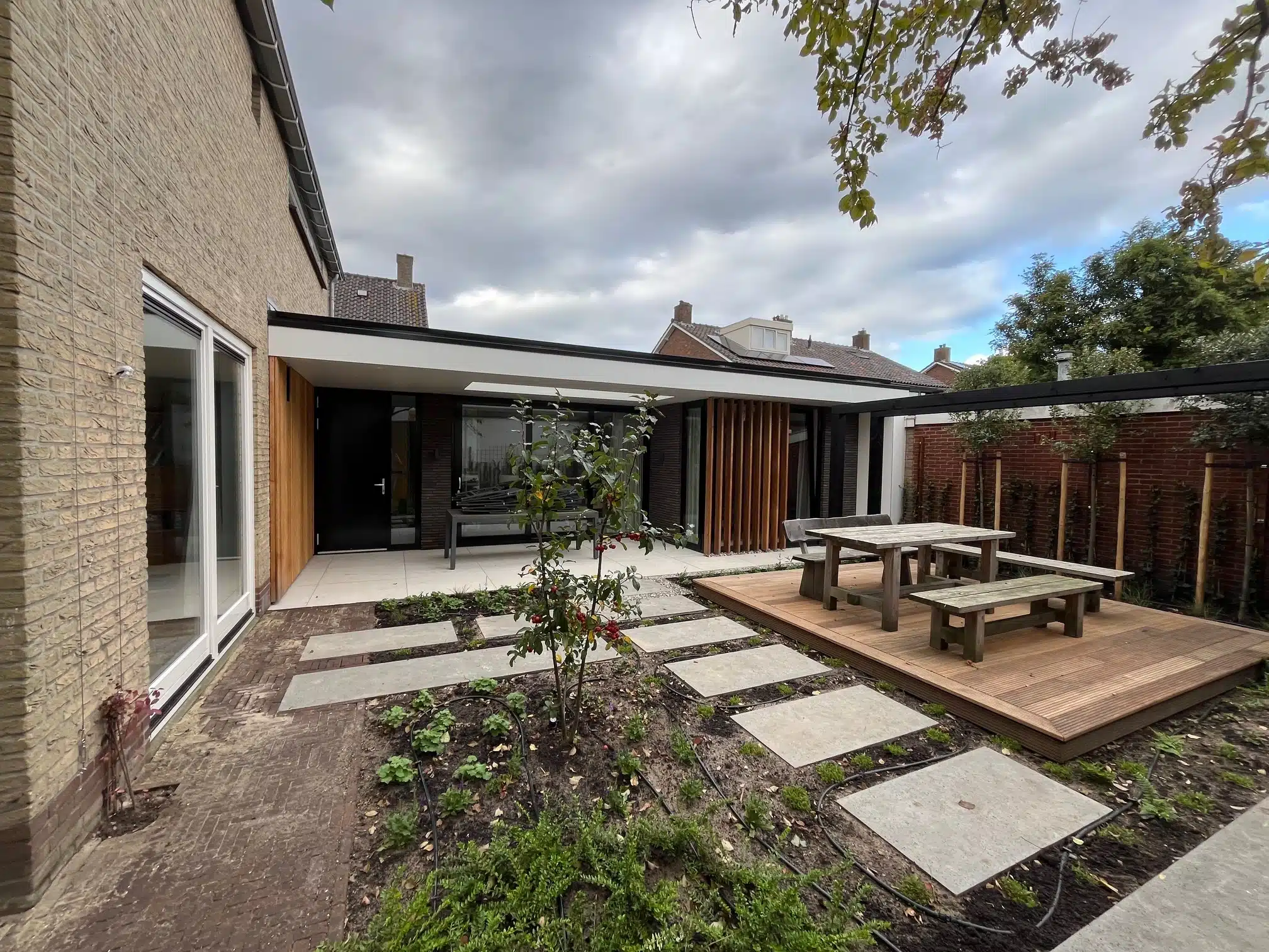 Frank en Herma oriënteerden zich op de woningmarkt, verhuizen werd ineens een optie. Er volgden zelfs meerdere bezichtigingen. Tot ze op zeker moment tot de conclusie kwamen: een ander huis brengt ook niet wat we willen. Het ontwerp in de la had hen niet losgelaten. Daarom klopten ze weer aan bij Joeri en gingen verder waar ze waren gebleven. Frank, breeduit lachend: ‘En zo ontstond een plan dat ons budget nog verder overschreed. Door onze zoektocht naar een ander huis beseften we ineens wat voor moois we op onze eigen plek konden realiseren. Dat mag dan ook iets kosten. We hakten de knoop door en zijn er vol overgave voor gegaan. We zeiden tegen elkaar: ‘Nu gaan we het ook goed doen.’