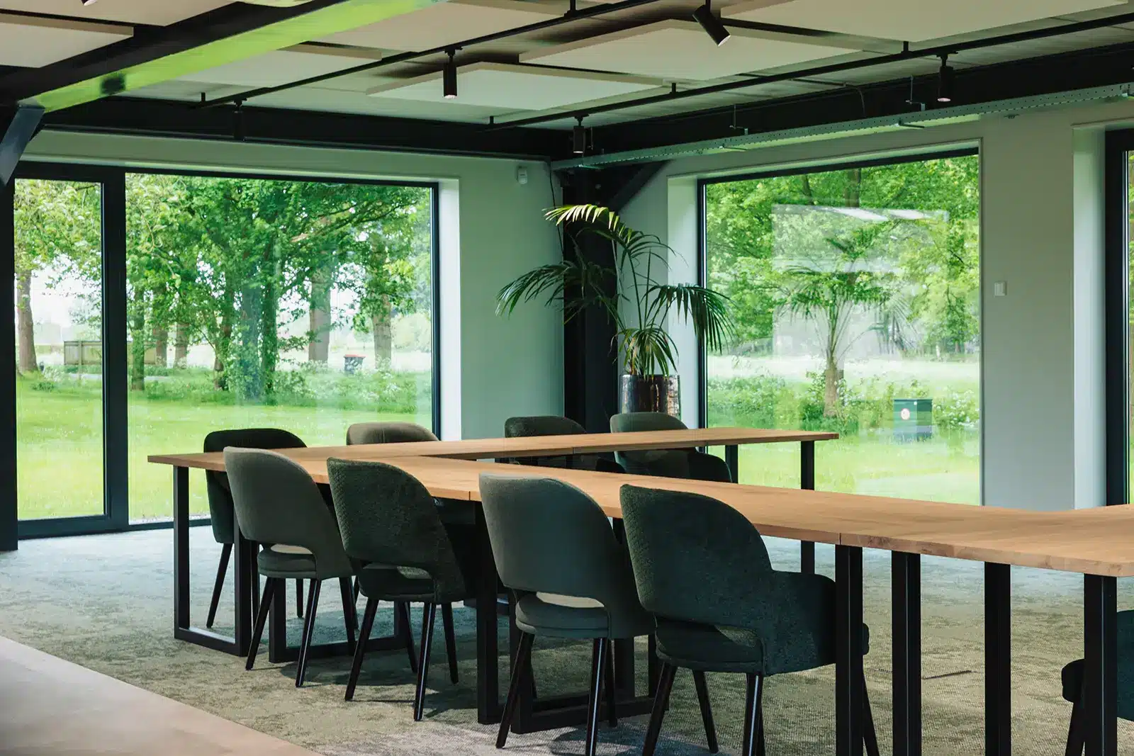 Wat we hebben gedaan? In het kort: een ontwerp gerealiseerd om de stallen om te bouwen tot kantoor- en werkruimtes. In het geval van gebouw rood betekende dat een stuk van de oude stal afbreken en er een glazen kas voor in de plaats zetten. Maar we hebben ook kantoren, laboratoria, koelunits en kweekkamers gerealiseerd. De houten gevelbekleding geeft de gebouwen een eigentijdse uitstraling.