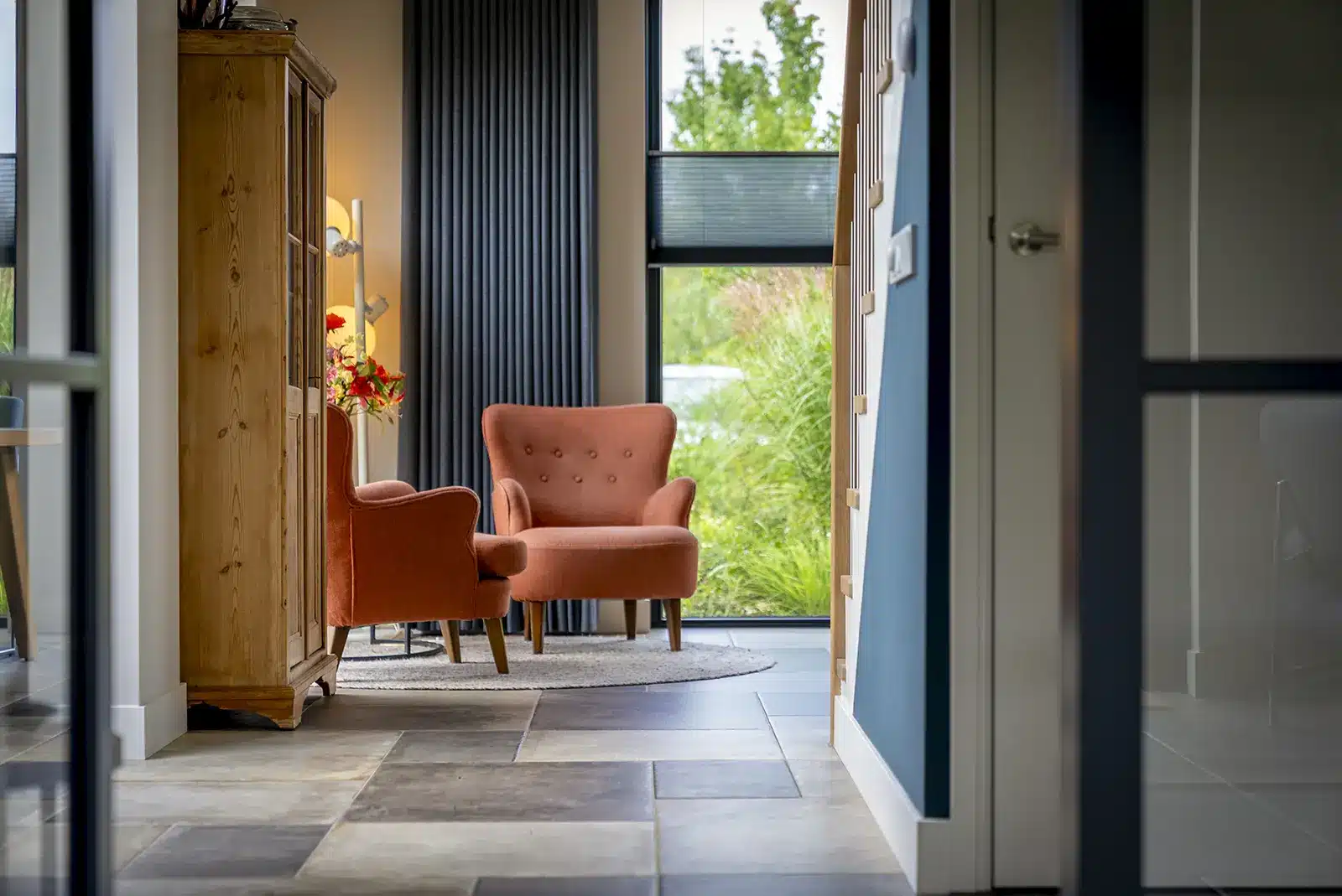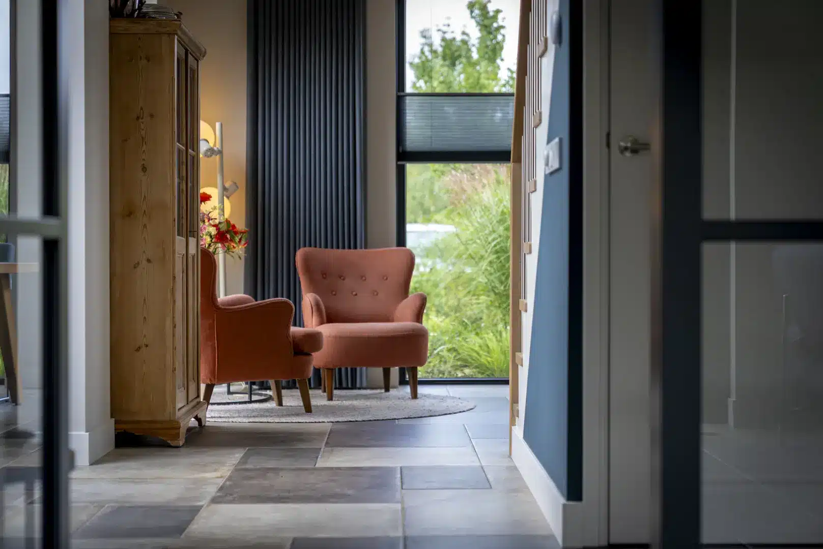Het trappenhuis vormt de spil van de woning. Direct zichtbaar vanaf de entree, met daaromheen alle leefruimtes. Compact op de kavel, maar ruimtelijk in gebruik. Een woning die precies past bij het leven van dit gezin.