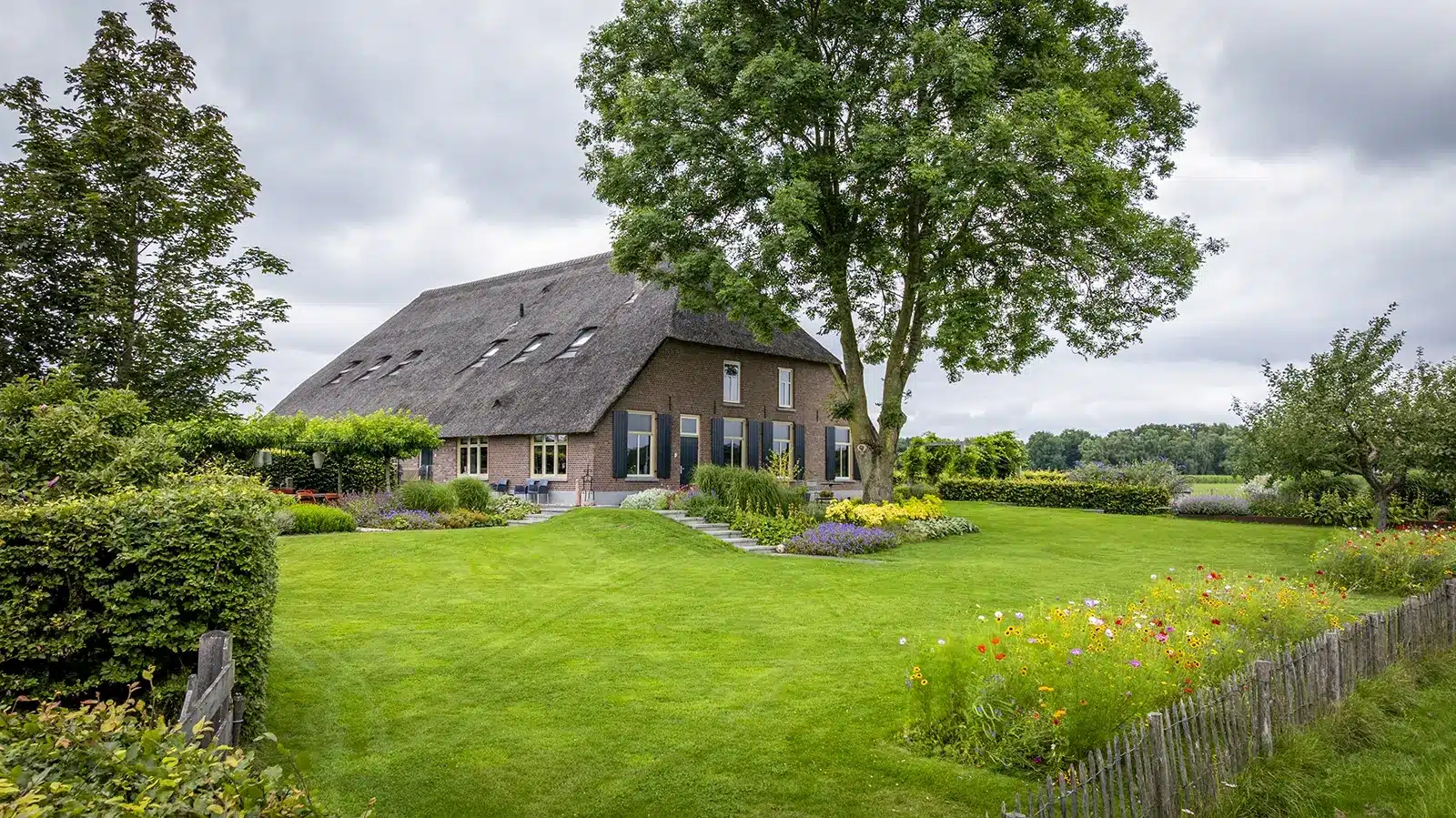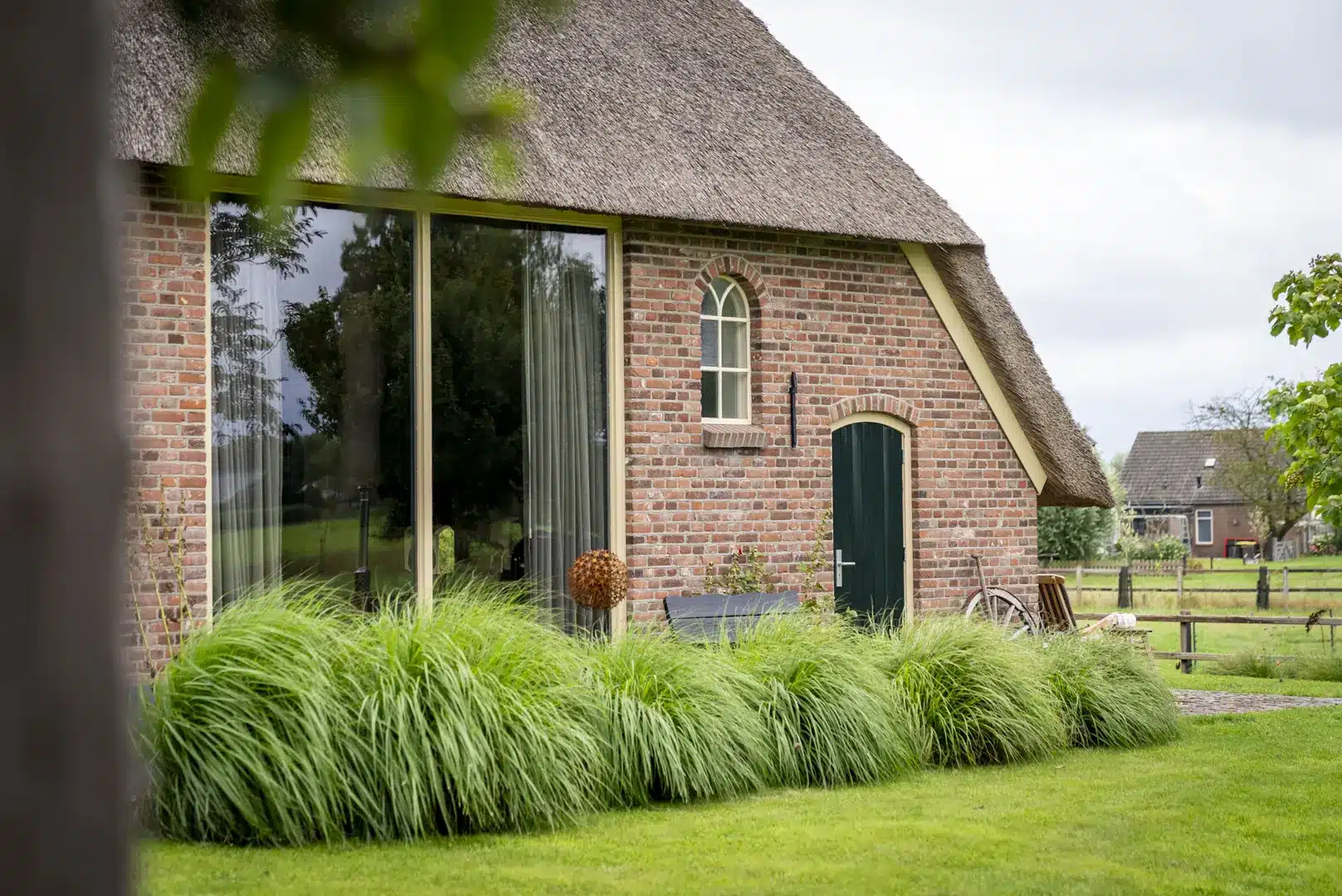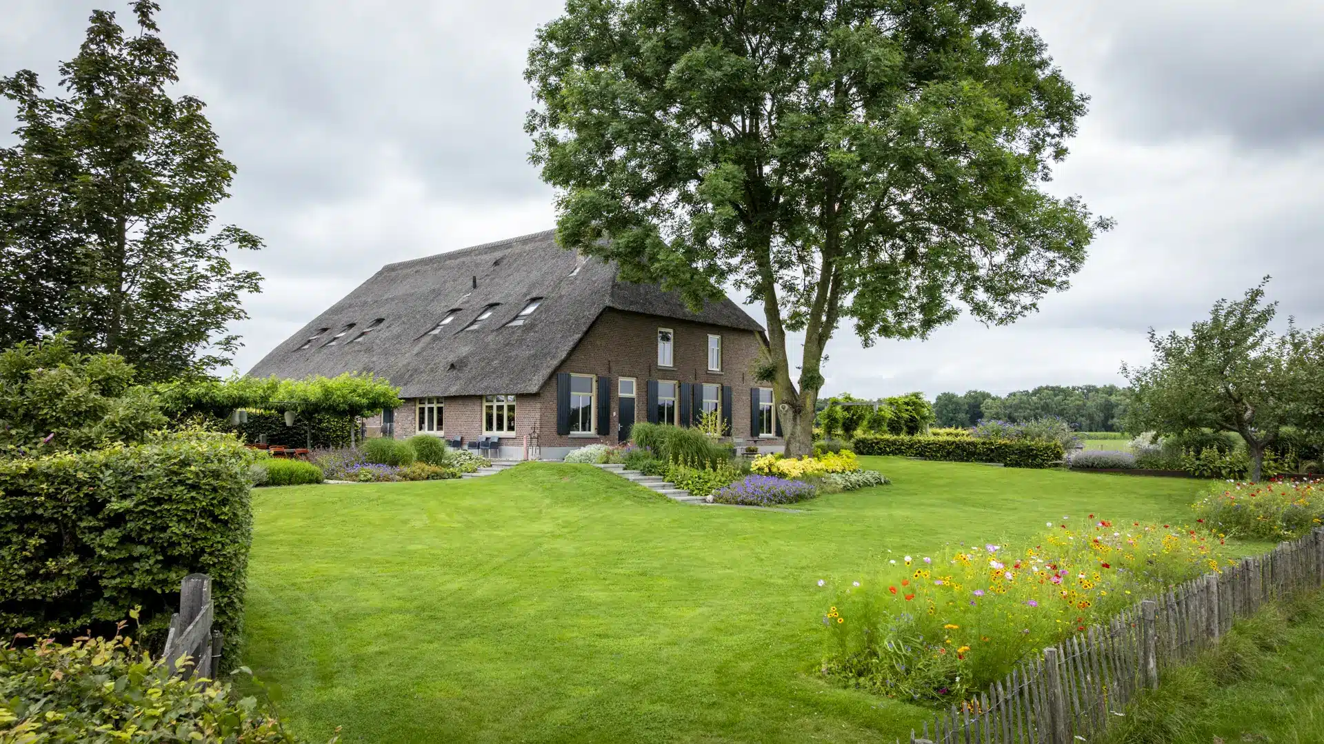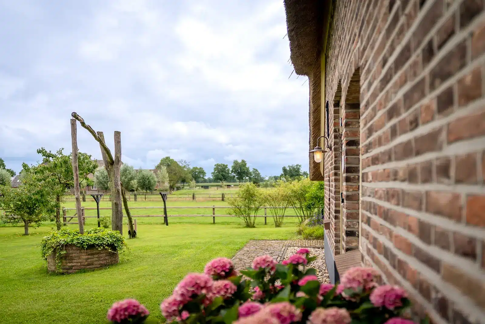 De verbinding met het erf en het landschap staat centraal. Grote ramen en tuindeuren halen de seizoenen naar binnen. Bijzonder detail is de waterput die opnieuw werd gemaakt. Een verwijzing naar de historie van het erf. En ook de monumentale boom elders op het erf bleef behouden. Zo blijven oud en nieuw in balans.