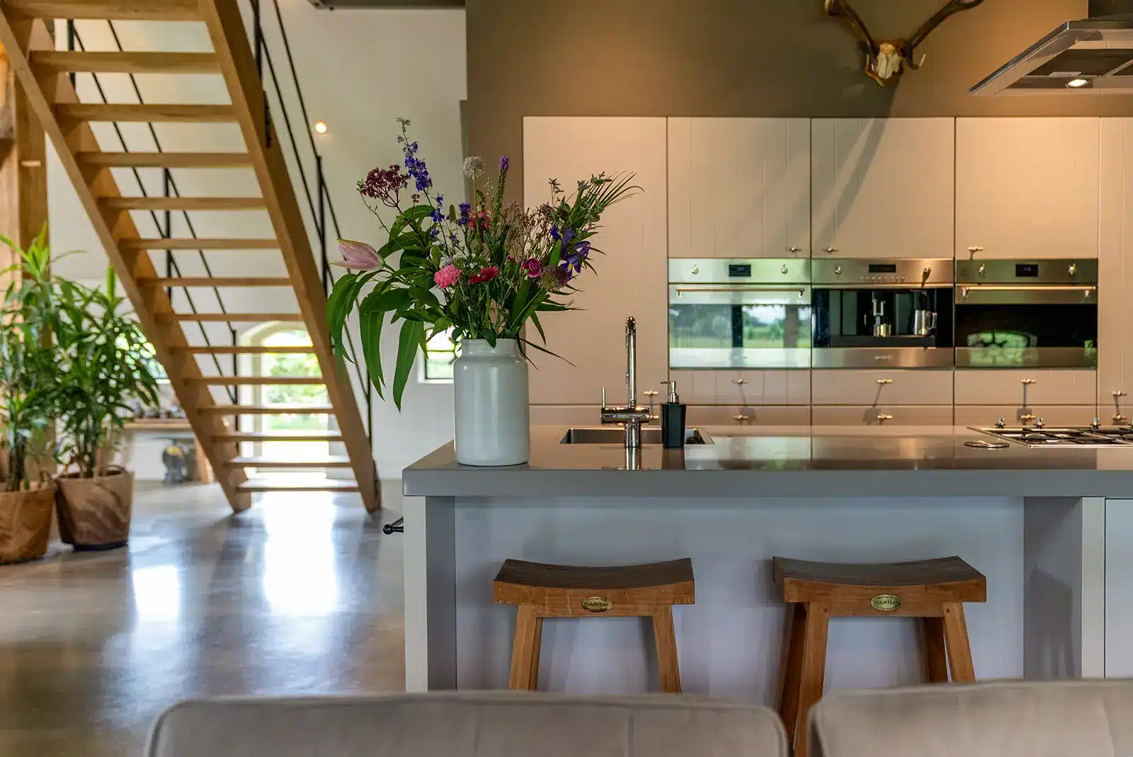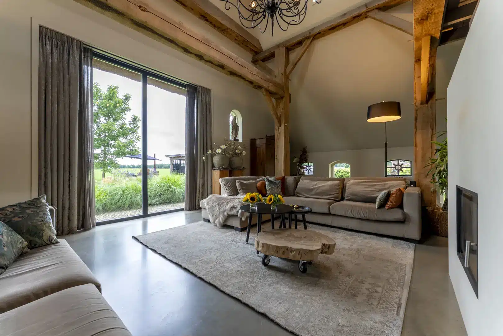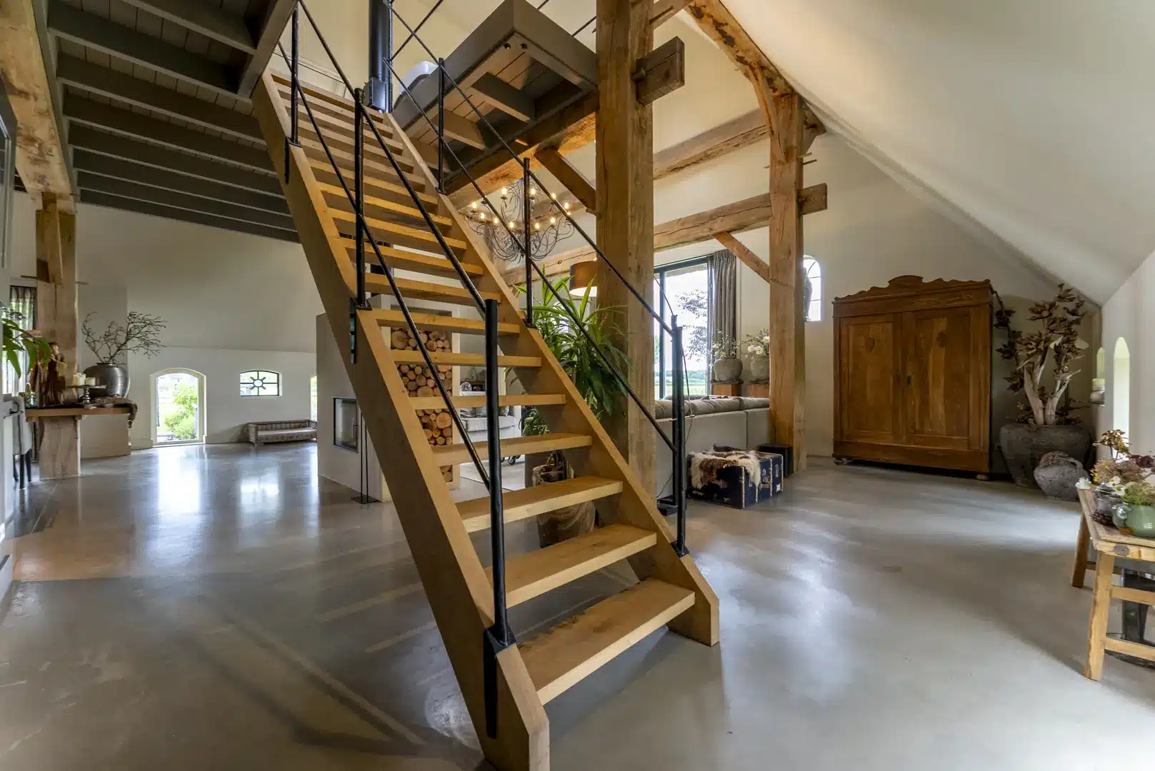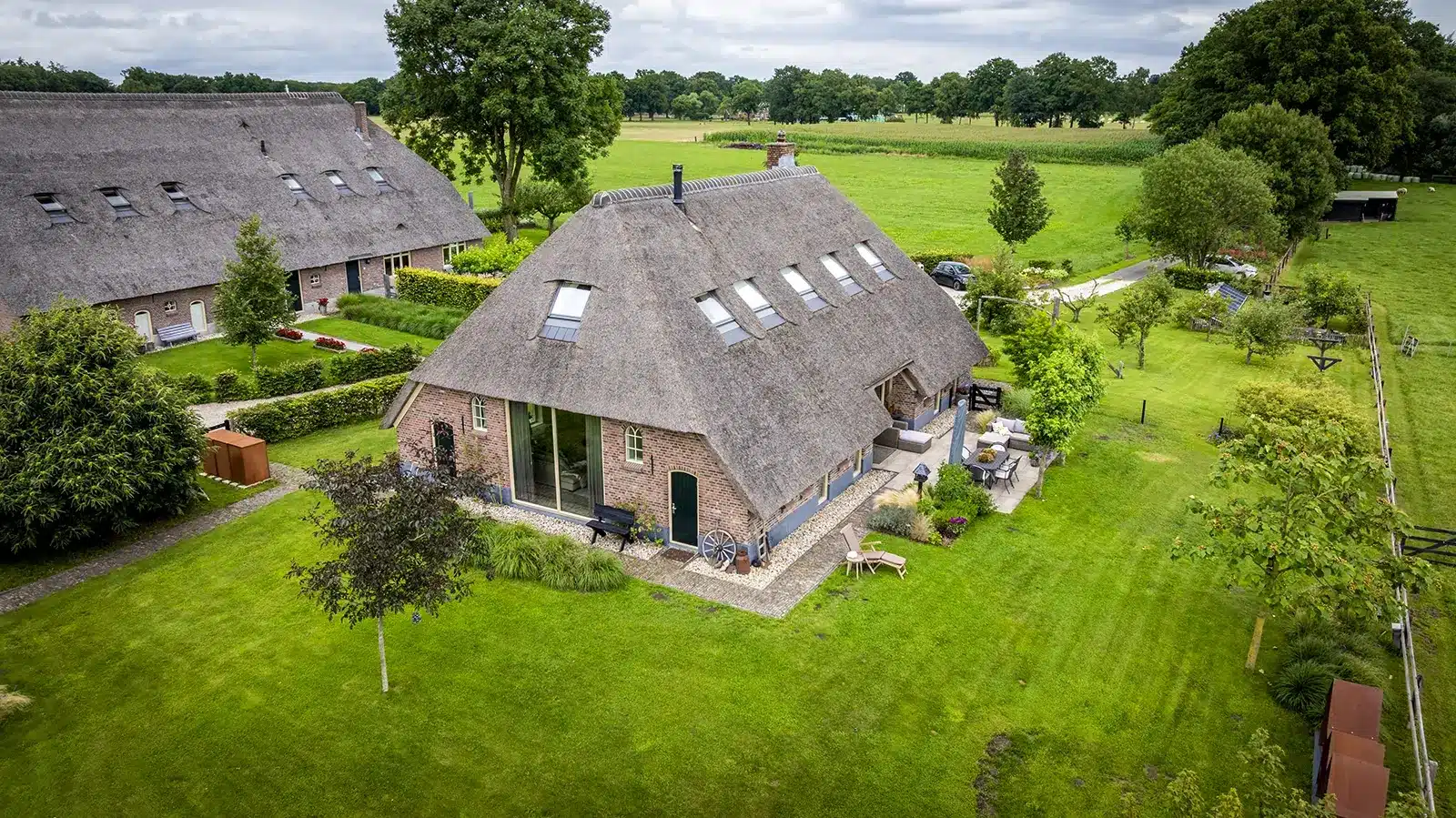 De verbinding met het erf en het landschap staat centraal. Grote ramen en tuindeuren halen de seizoenen naar binnen. Bijzonder detail is de waterput die opnieuw werd gemaakt. Een verwijzing naar de historie van het erf. En ook de monumentale boom elders op het erf bleef behouden. Zo blijven oud en nieuw in balans.